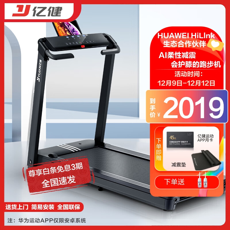 亿健(YIJIAN)跑步机家用68cm大跑台免安装全折叠精灵Pro10.1吋高清大屏价格:2299.00元!