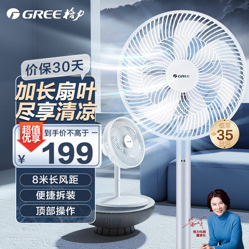格力(GREE)【加长扇叶】七叶轻音立式电风扇家用柔风落地扇台式桌面小型风扇大风量节能宿舍电扇 FD-3515Bh7价格:219.00元!
