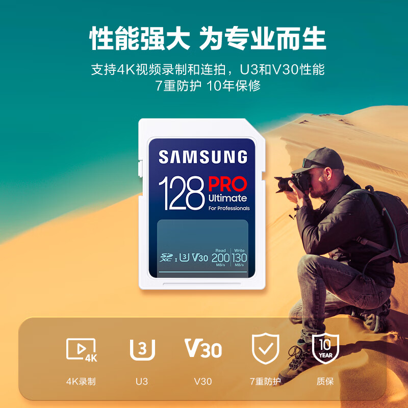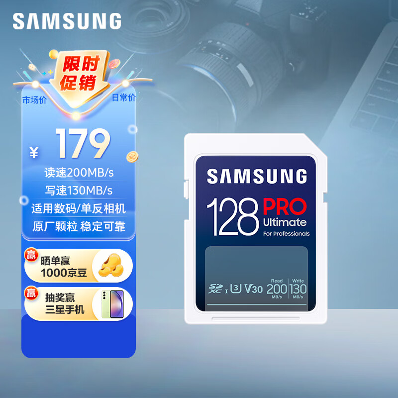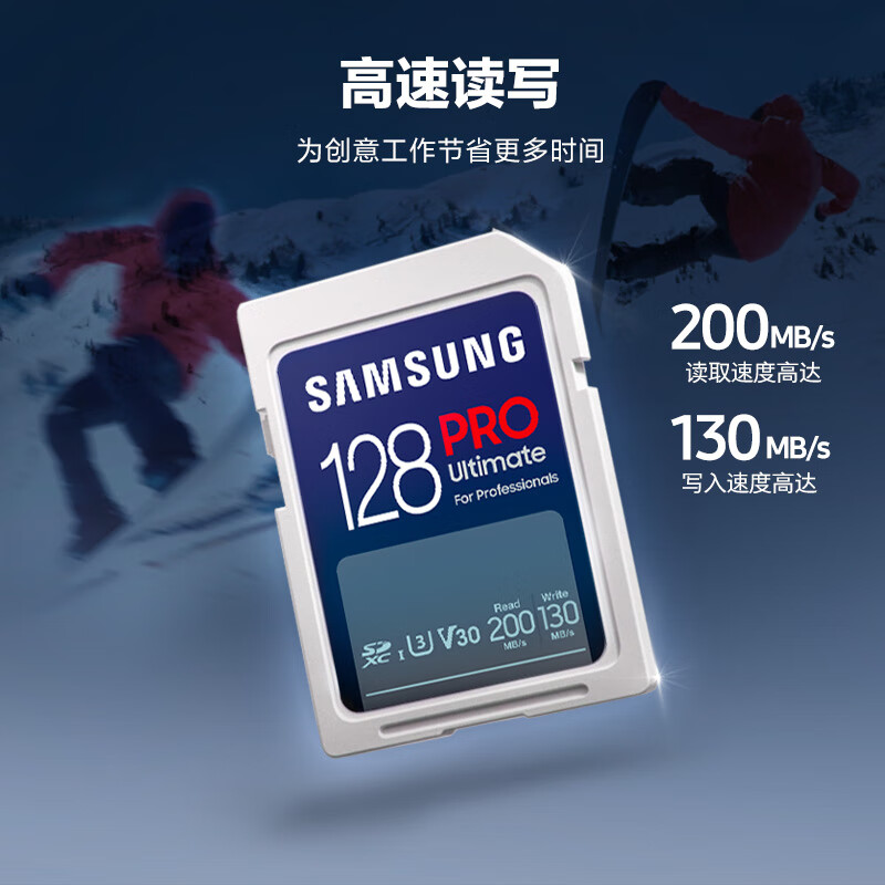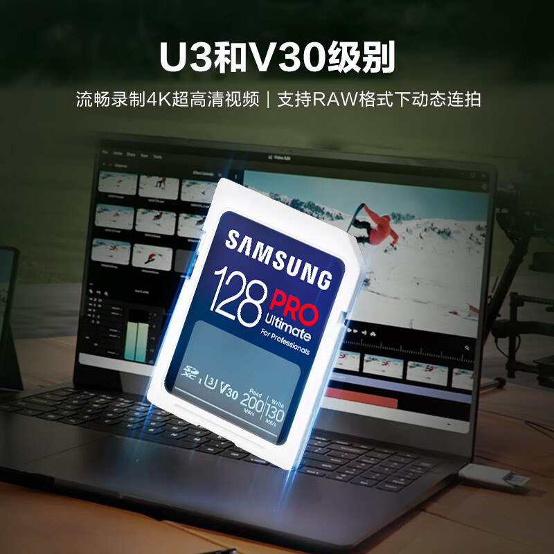 三星(SAMSUNG)128GB SD存储卡Ultimate U3 V30 4K超高清拍摄 相机内存卡 sd卡大卡 读速200MB/s写速130MB/s价格:179.00元!