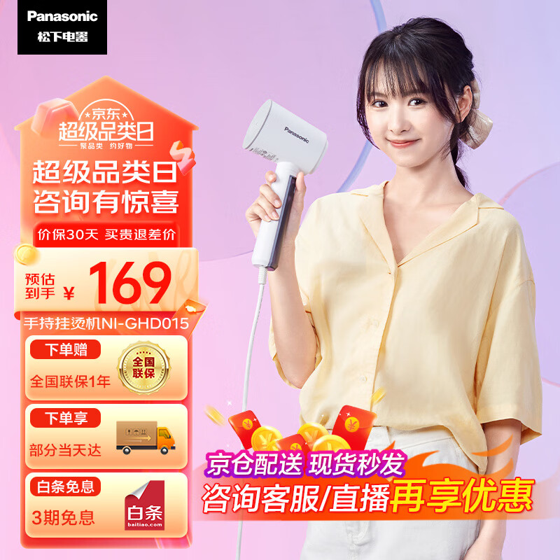 松下(Panasonic)挂烫机家用 熨斗 蒸汽挂烫机 便携 手持挂烫机 电熨斗 NI-GHD015 冰山白价格:169.00元!