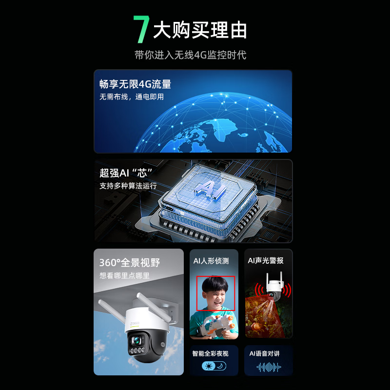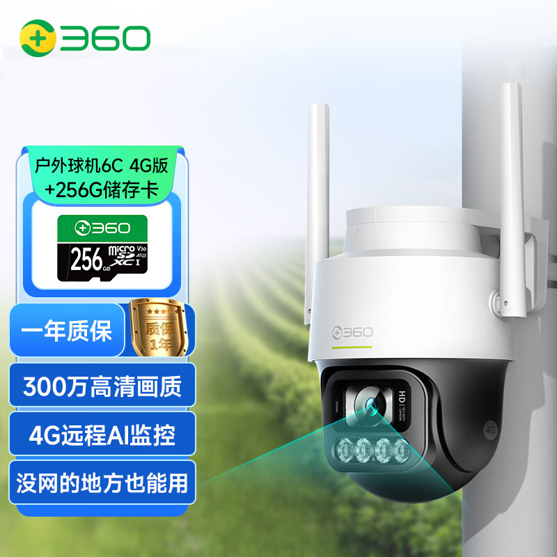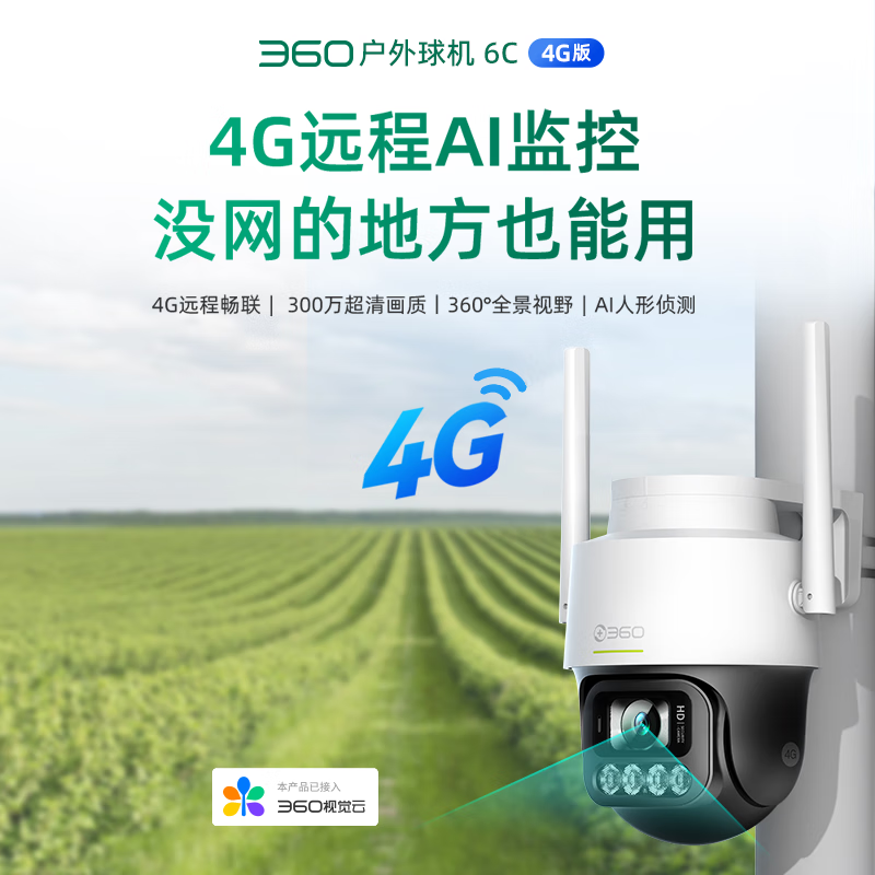 360户外球机6C 4G版 300W室外户外防水监控声光报警2K高清智能全彩夜视wifi智能监控摄像机价格:449.00元!
