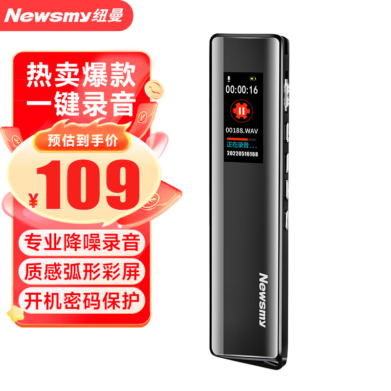 纽曼录音笔 V03 8G 专业录音设备 高清降噪 长时录音 学习培训交流 商务办公会议 录音器 哑黑价格:139.00元!
