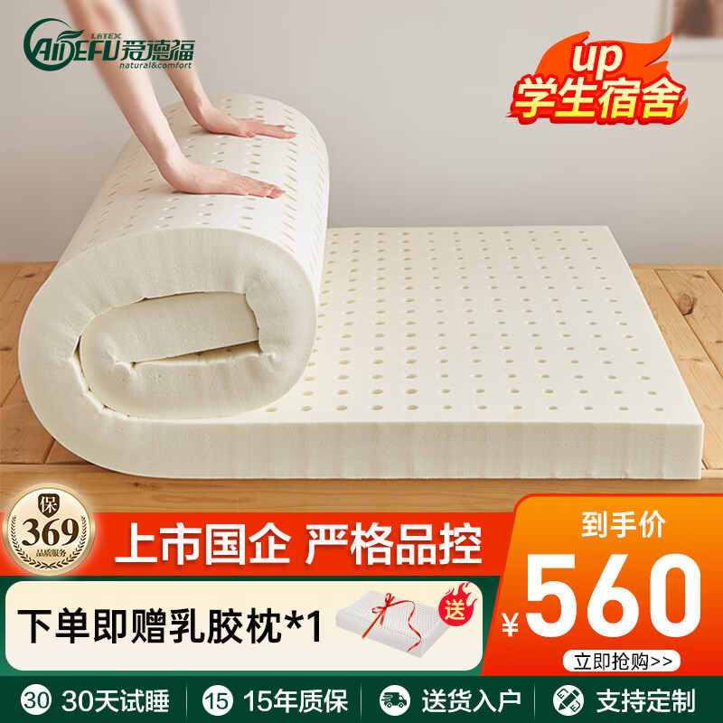 爱德福 乳胶床垫 单人学生宿舍专用床褥加厚0.9m1.2米定制100*190*5cm价格:660.00元!