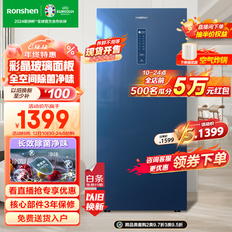 容声(Ronshen) 132升立式冰柜一级能效冰柜家用办公室冷冻柜 风冷无霜除菌净味冷柜母婴小冰箱BD-132WRSY价格:1399.00元!