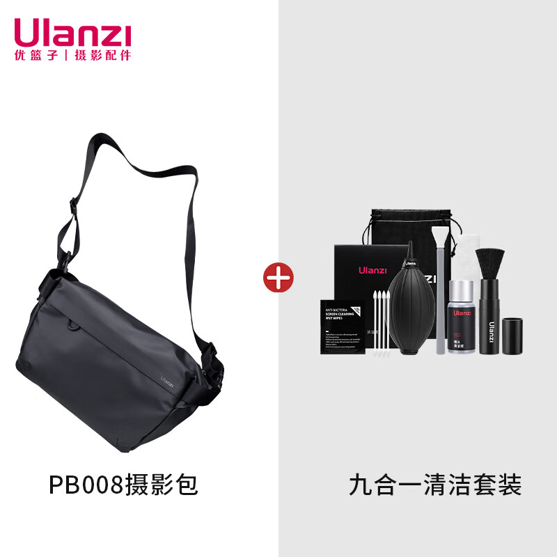 优篮子ulanzi PB008防水单肩相机包+九合一相机清洁套装便携斜跨摄影包佳能尼康微单休闲收纳包价格:217.00元!