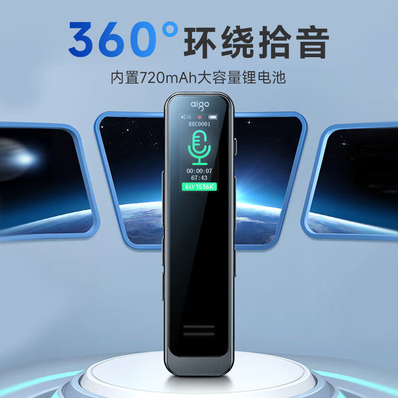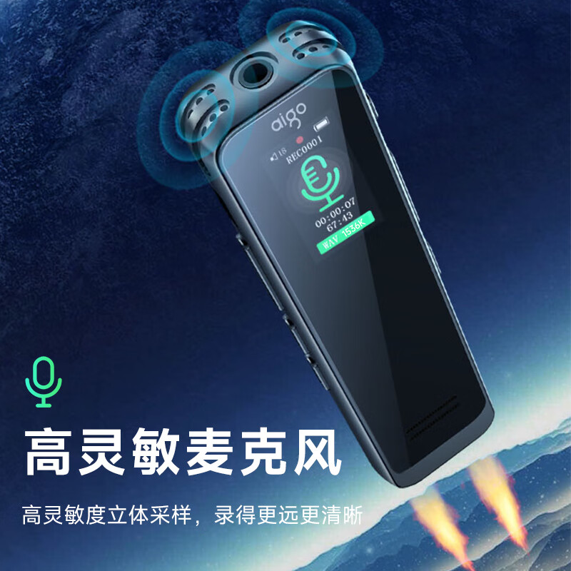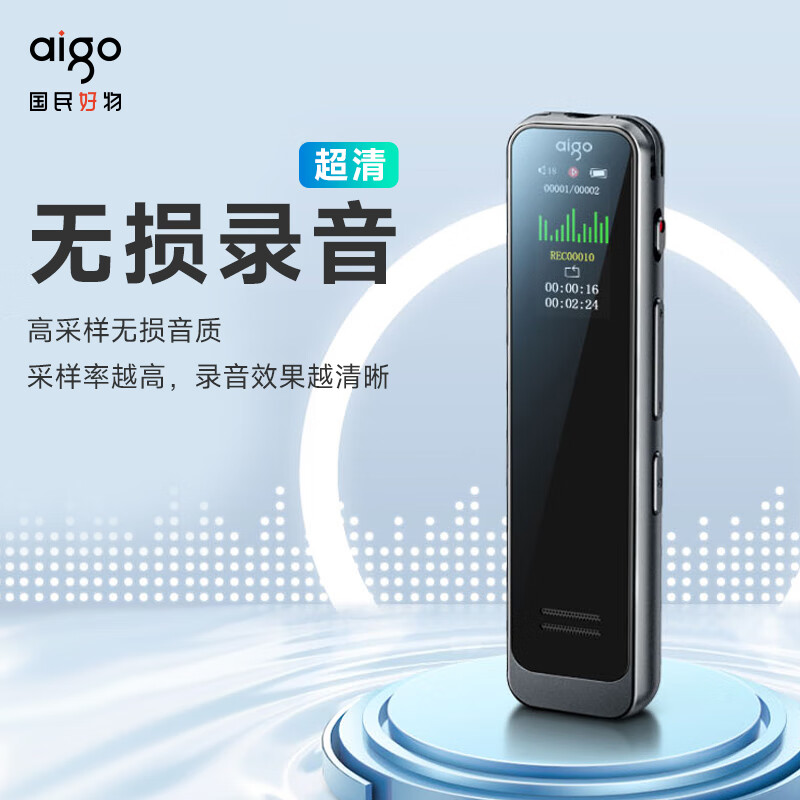 爱国者 aigo录音笔R3315C 8G一键录音专业普及型高清降噪 学习培训商务会议采访 录音器 MP3播放 黑色价格:99.00元!