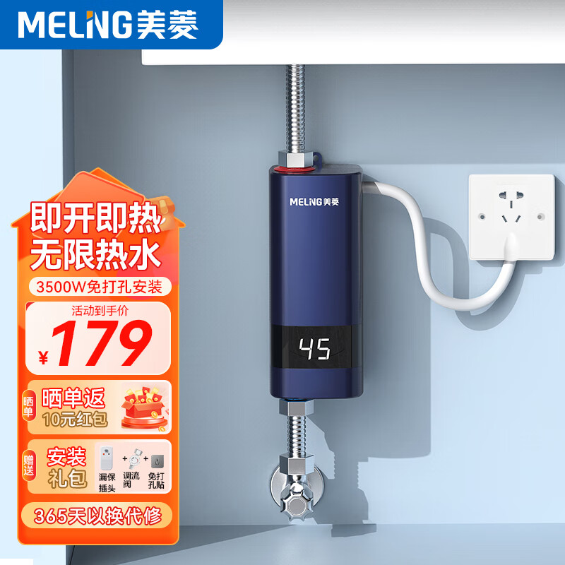 美菱MELNG 即热式电热水器快速热热水器家用热水宝快速加热恒温小厨宝MJR-DC3541漏保款价格:189.00元!