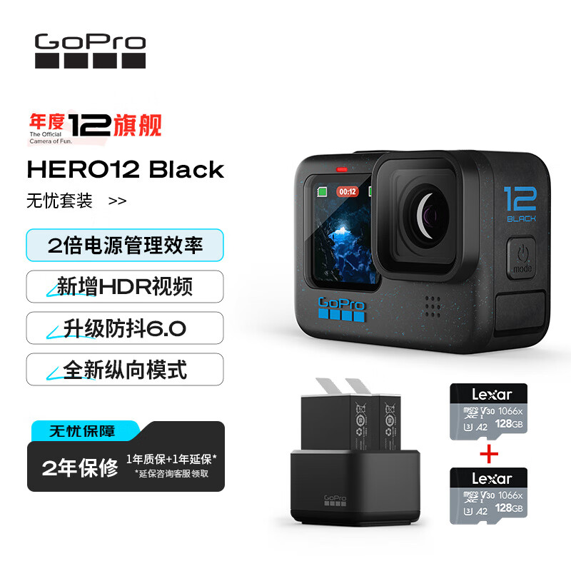 GoProH12 运动相机 户外摩托骑行 潜水防水防抖相机 无忧套装加128G存储卡套组价格:3453.00元!