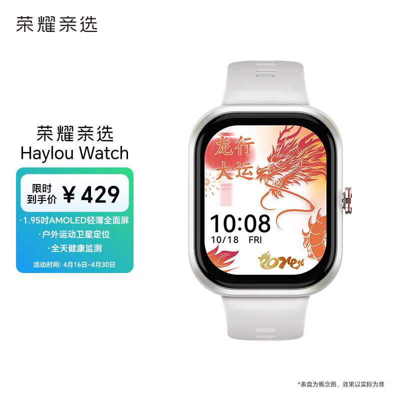荣耀亲选 Haylou Watch 智能手表 1.95吋AMOLED轻薄屏 户外运动卫星定位 全天健康监测 星光白价格:429.00元!