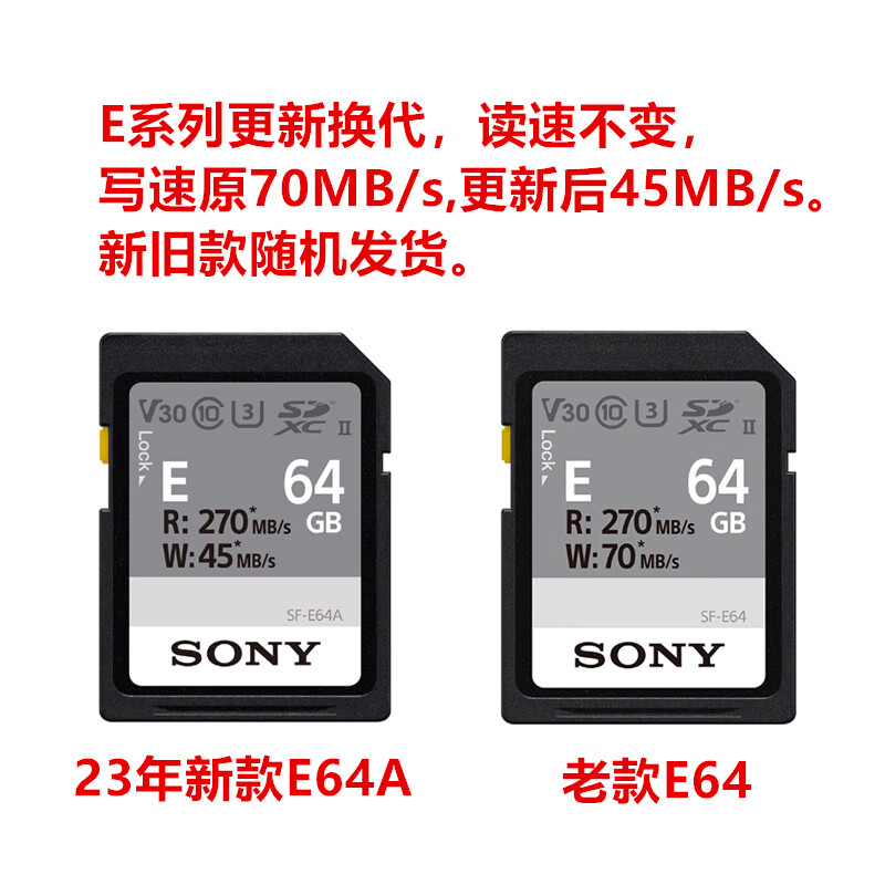 索尼(SONY)64GB SD存储卡 SF-E64A E系列U3 C10 V30读速高达270MB/s 相机内存卡(新老款随机发货)价格:299.00元!