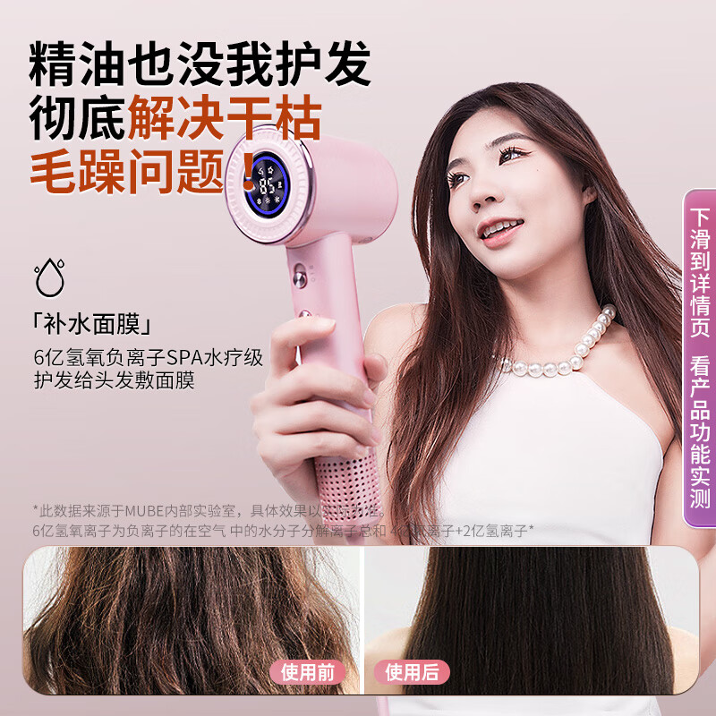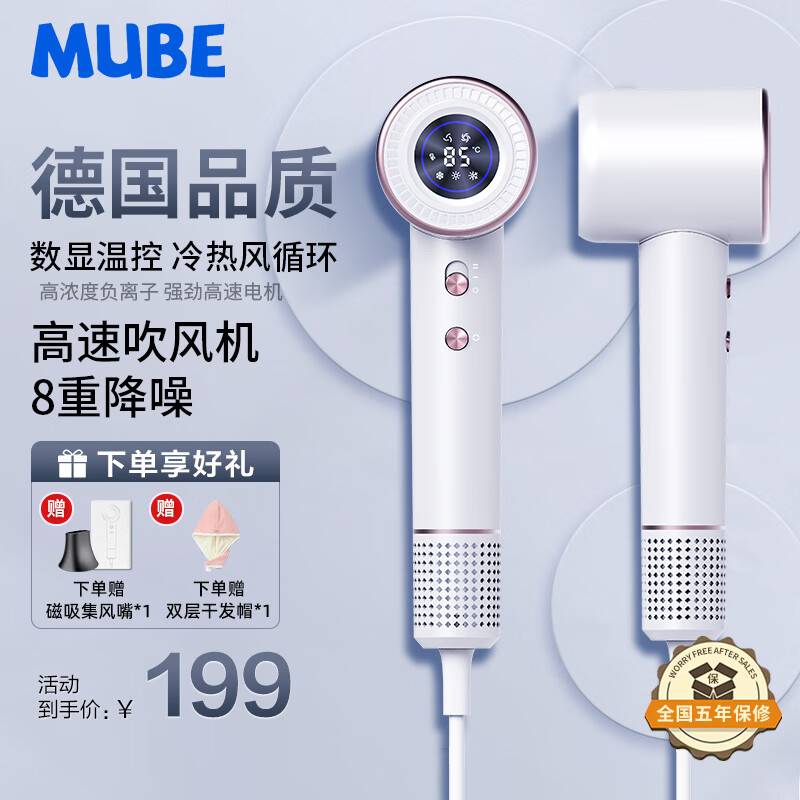 MUBE高速护发吹风机家用静音负离子大功率不伤发电吹风亿级负离子吹风筒恒温大风力速干低噪 GF-02珠光白礼盒款【30秒速干/6亿滋养负离子价格:345.00元!