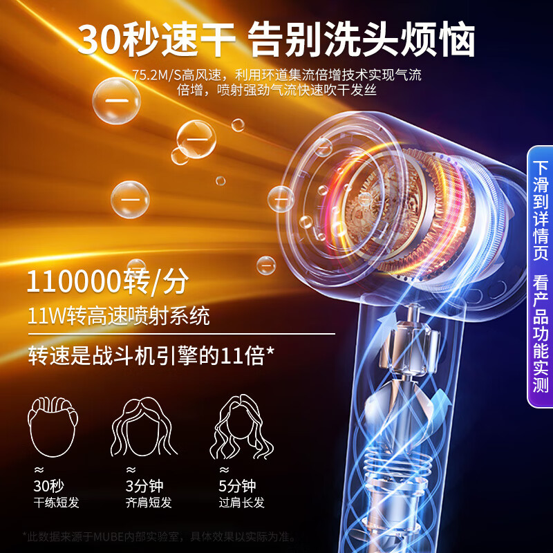 特色功能:动态冷热风,高速吹风