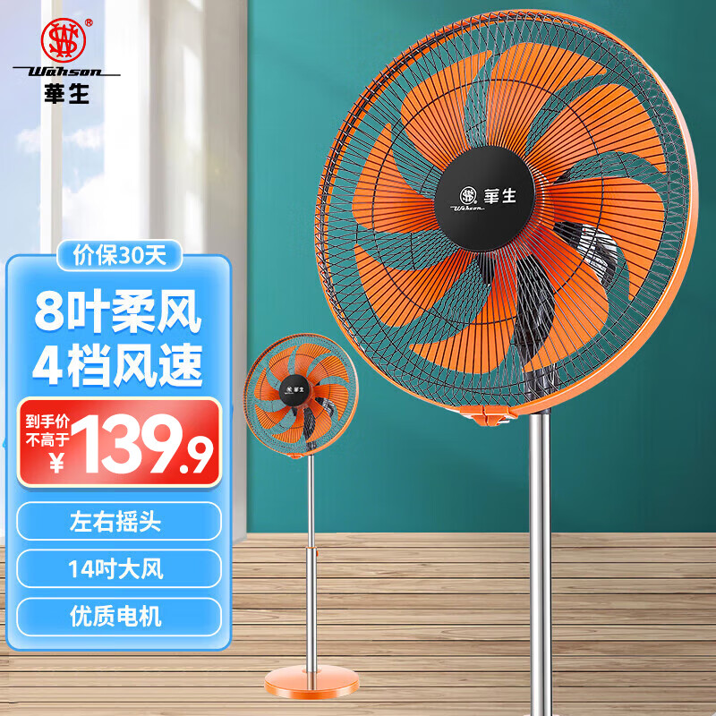华生(Wahson)电风扇/落地扇/商务电扇立式/8叶低噪大风量宿舍办公家用空气流通风扇FS-C1408价格:149.90元!