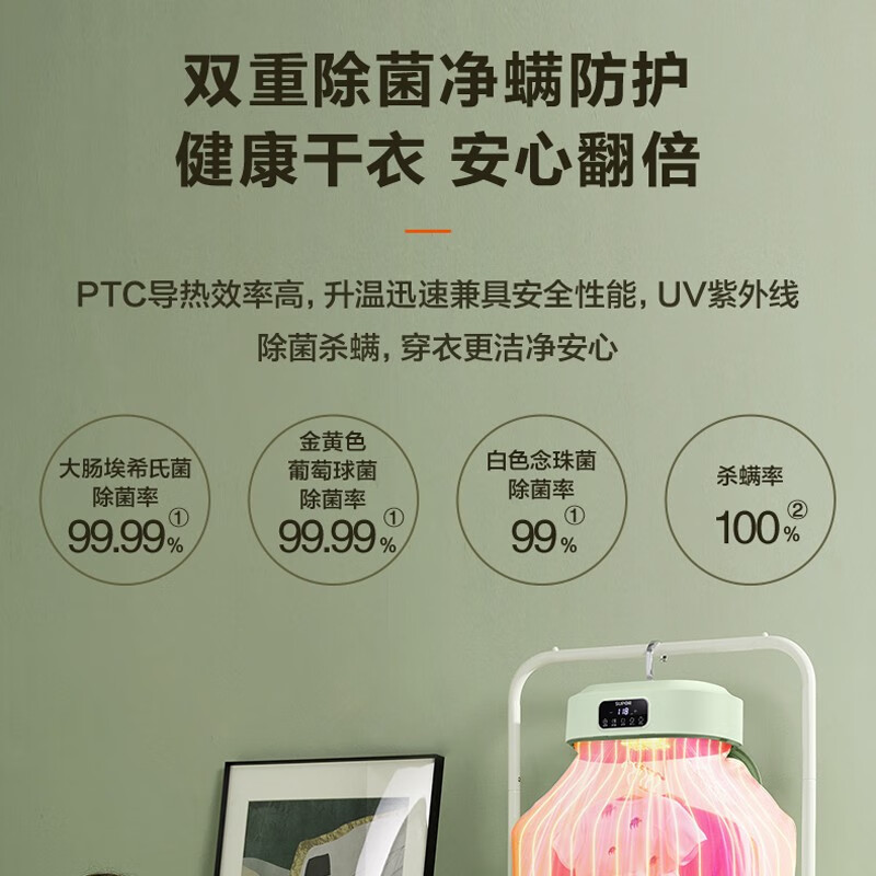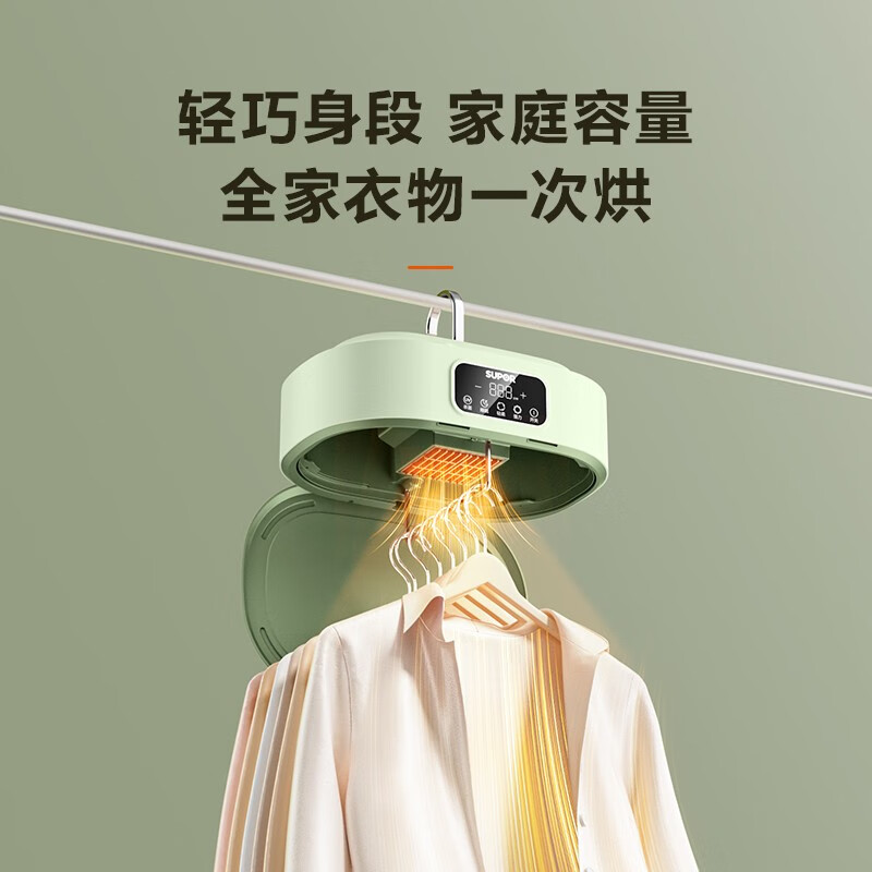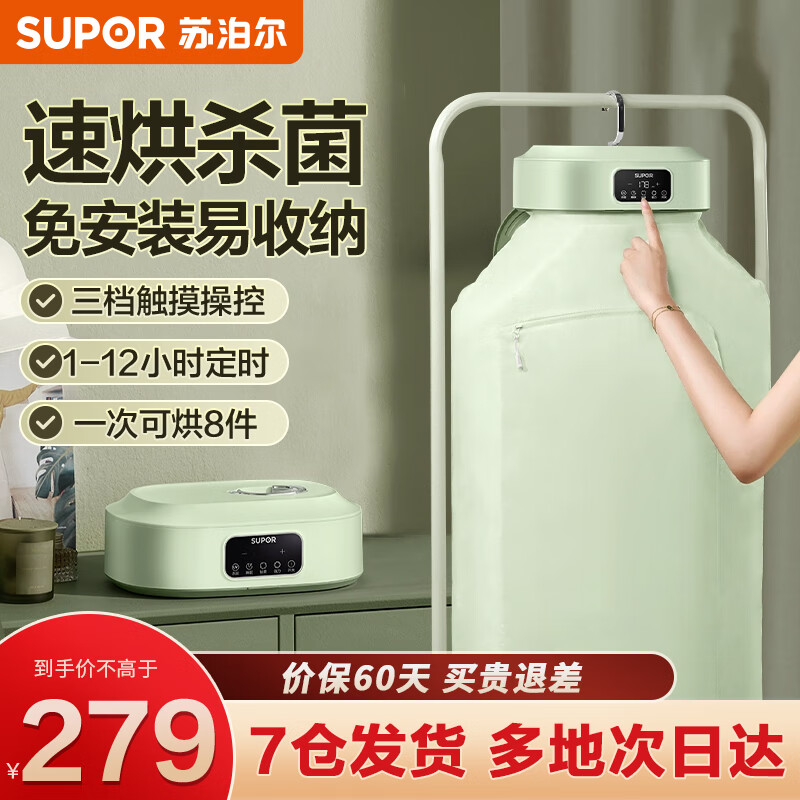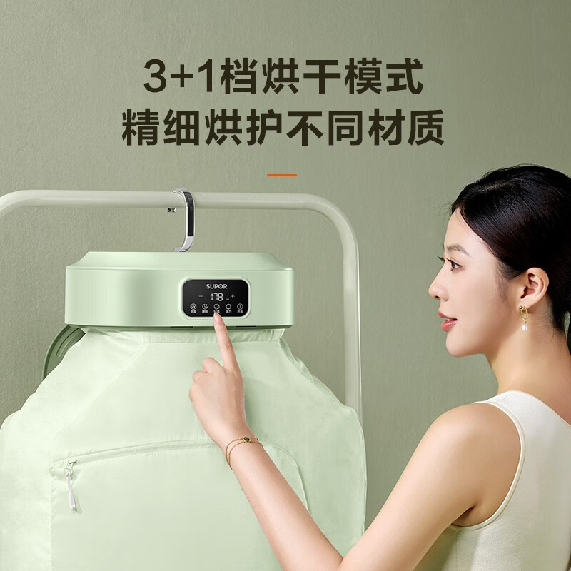 苏泊尔干衣机折叠便携式旅行烘干机学生宿舍衣物烘衣机小型挂式 600W收纳折叠旅行款 ELD-520A/B 绿色价格:279.00元!