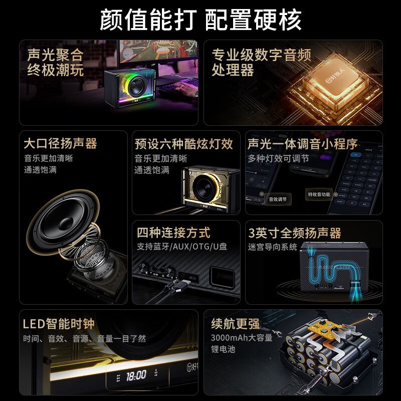 好牧人光冷能量无线蓝牙音箱电竞游戏桌面电脑音响家庭ktv家用户外露营重低音炮大音量高音质节日礼物价格:299.00元!