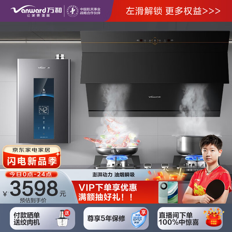 万和(Vanward)烟灶热三件套 侧吸式自动清洗 油烟机燃气灶具热水器厨房多件套装DJ738+B7L51+MLS5D16(天然气)价格:3598.00元!