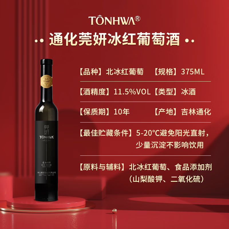 通化 1937莞妍冰酒 北冰红甜红冰葡萄酒 11.5%vol 晚安红酒 375ml*6瓶 果酒价格:574.00元!