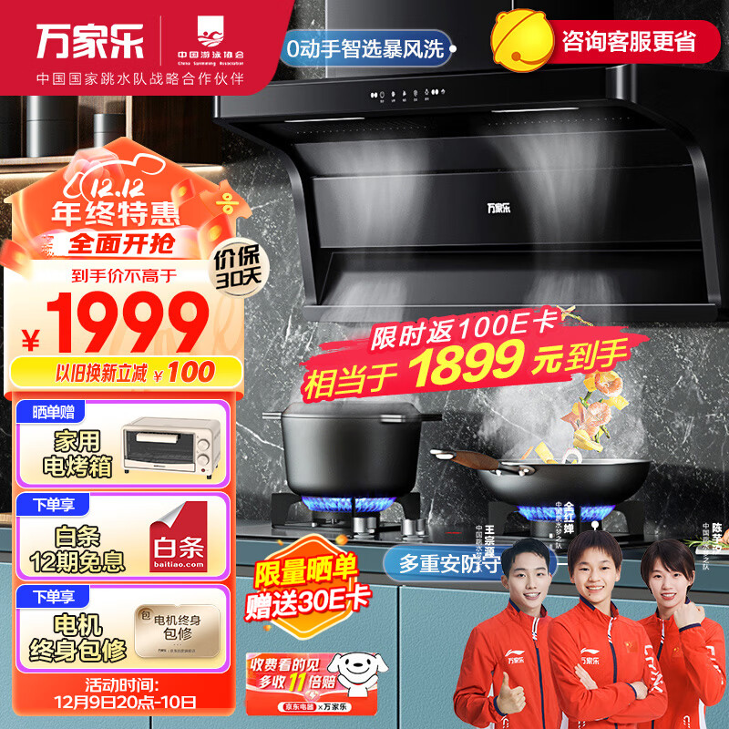万家乐 抽油烟机 顶侧双吸油烟机23m3/min自清洗挥手智控烟灶套装高温防烫燃气灶具套装AK6+AY4天然气价格:2199.00元!