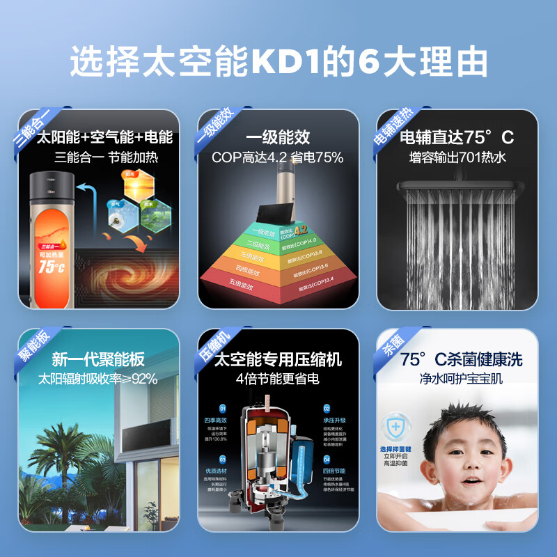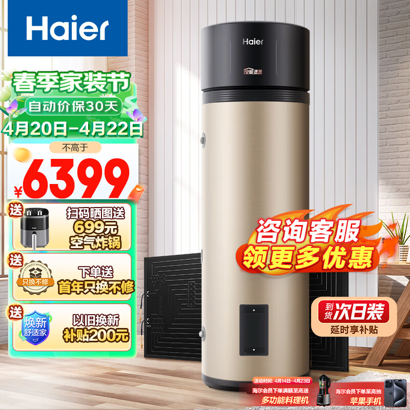 海尔(Haier)太空能空气能太阳能热水器二合一家用200升一级能效平板式WIFI全屋热水75°C TK48/200-KD1(U1)价格:6239.00元!