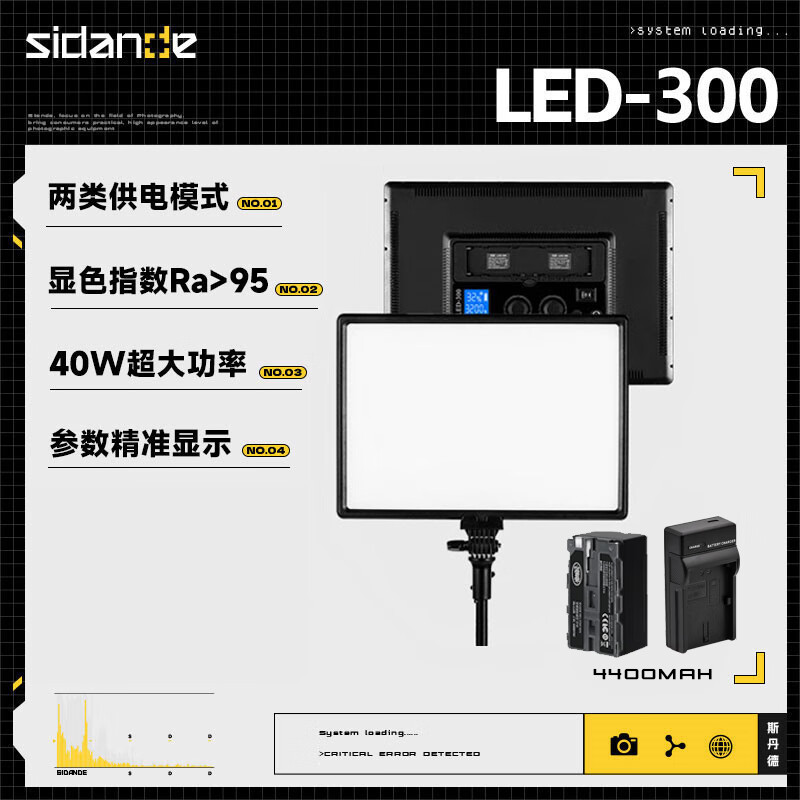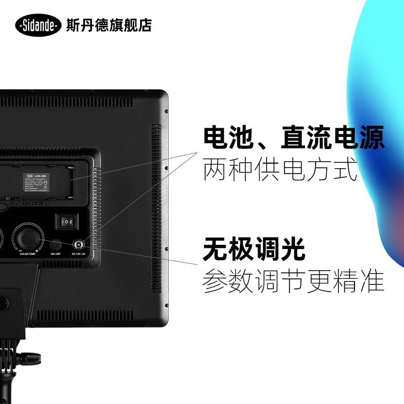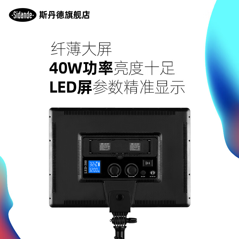 斯丹德(sidande)LED-300 摄影灯柔光补光灯主播室内夜景人像照相打光灯电影拍照灯摄影常亮灯专业影视灯价格:425.00元!