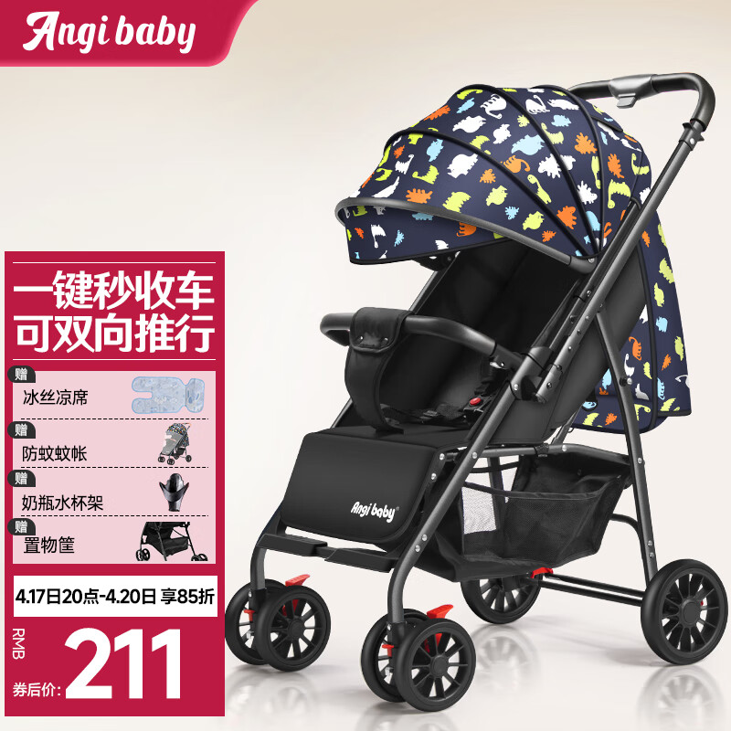 ANGI BABY婴儿推车可坐可躺可折叠减震婴儿车双向伞车宝宝bb小孩手推车童车价格:249.00元!