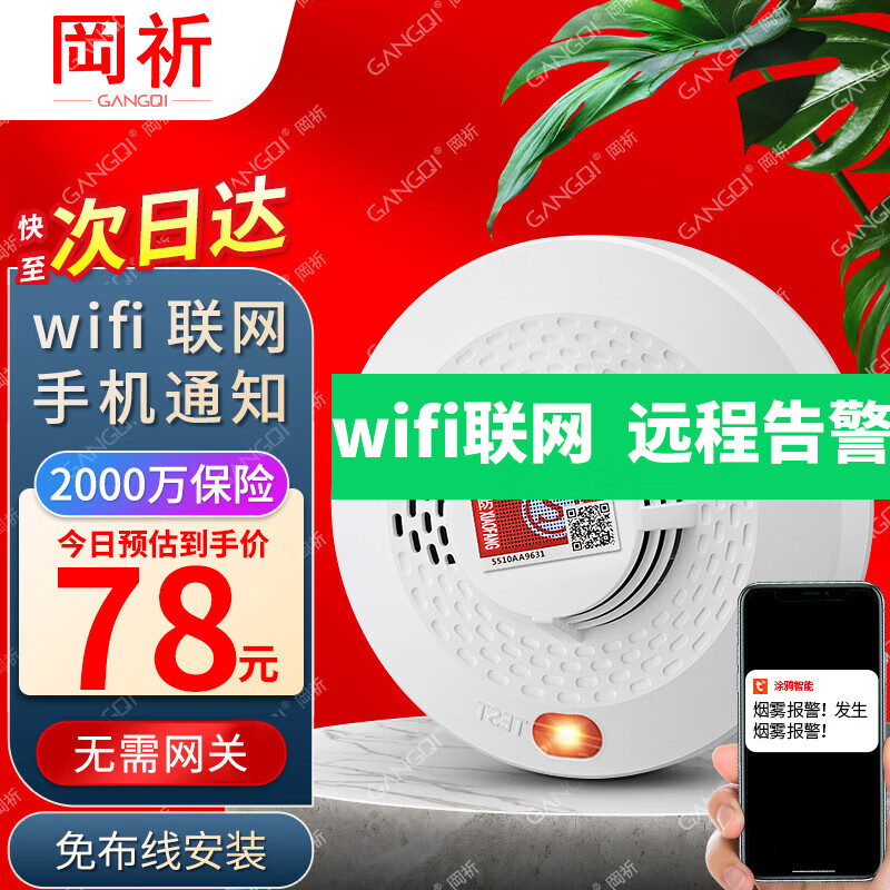 岡祈(Gangqi)远程手机通知 wifi火灾烟雾报警器消防3C认证家用无线物联网防火烟感报警器商用感应探测器价格:129.00元!