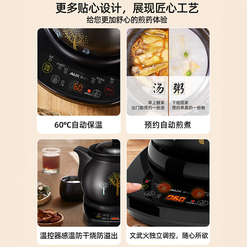奥克斯(AUX) 中药锅煎药壶 3L中药壶智能全自动熬药罐电砂锅 电药锅煲药壶分体式陶瓷家用HX-YS0301价格:148.00元!