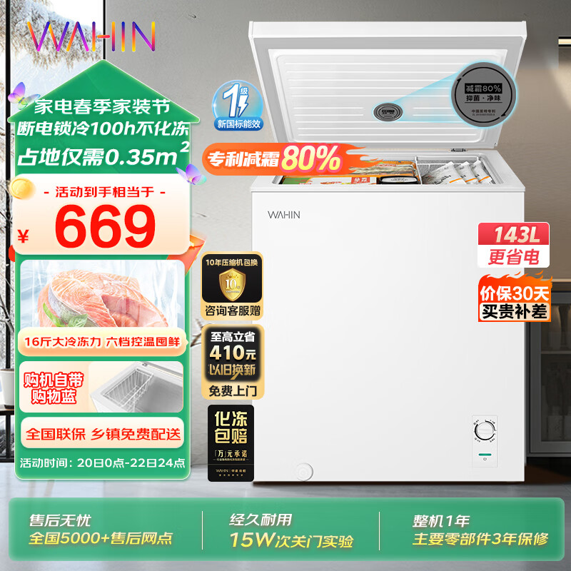 华凌 美的出品143升减霜家用冰柜 单温囤货冷藏冷冻转换小冷柜 一级能效节能低霜小冰箱BD/BC-143KHD价格:669.00元!