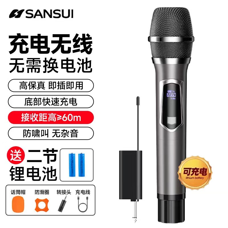 山水(SANSUI)U6无线麦克风话筒接收器家庭KTV会议唱歌网络电教演讲K歌卡拉OK户外插音响音箱金属款价格:179.00元!