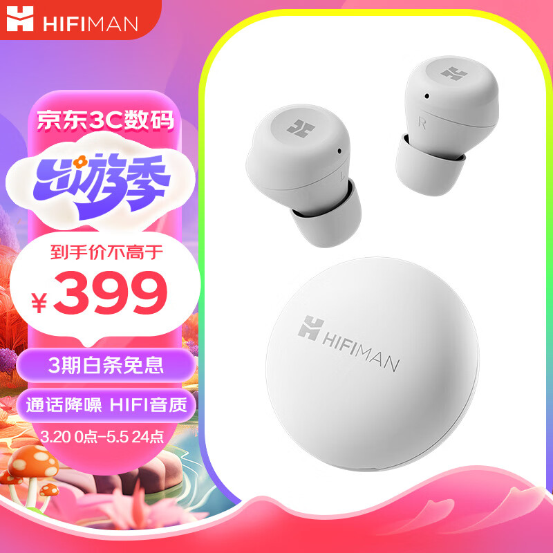 HIFIMAN(海菲曼)TWS450真无线蓝牙耳机 入耳式无线耳机 通话降噪 蓝牙5.3 适用苹果华为小米手机 价格:399.00元!