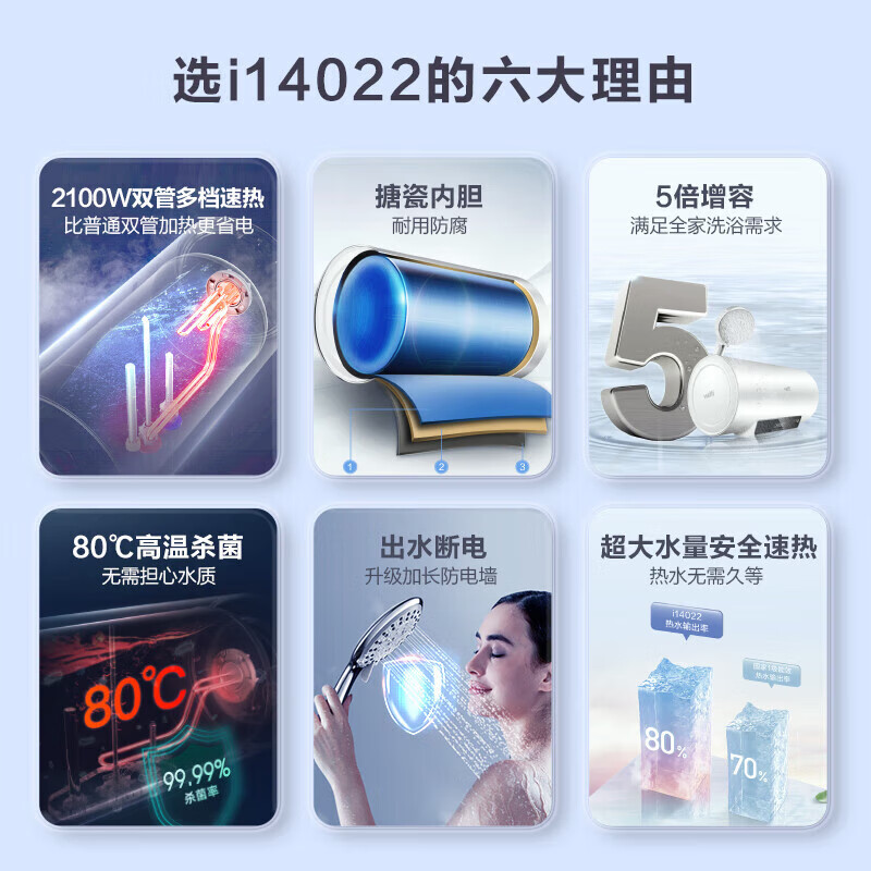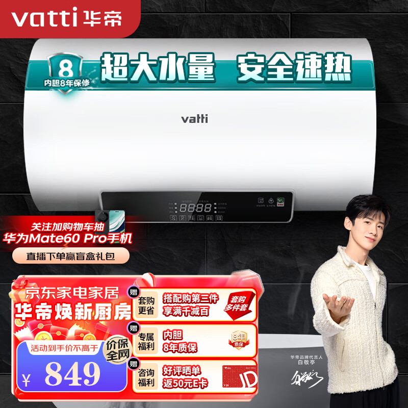 华帝(VATTI)50升电热水器储水式家用热水器省电 2100W双管速热 一键预约 远程遥控 DDF50-i14022价格:849.00元!