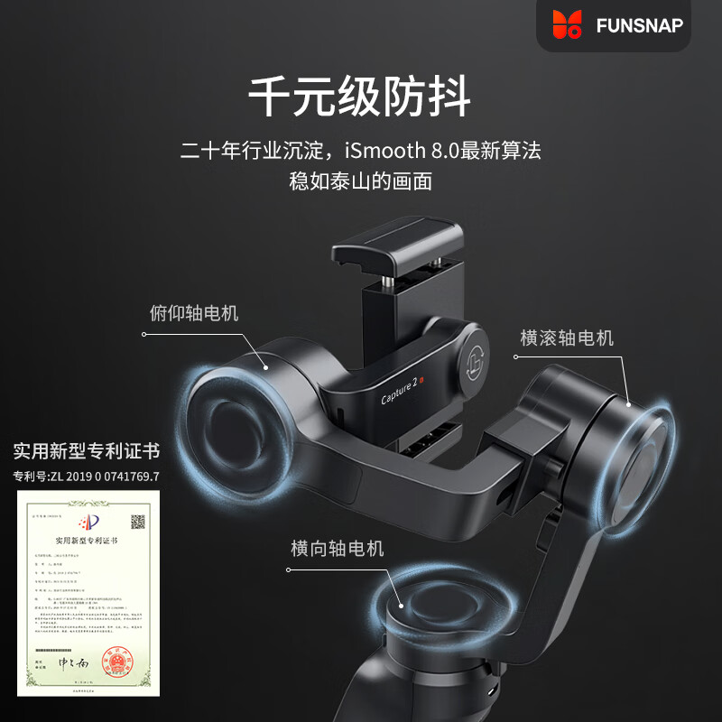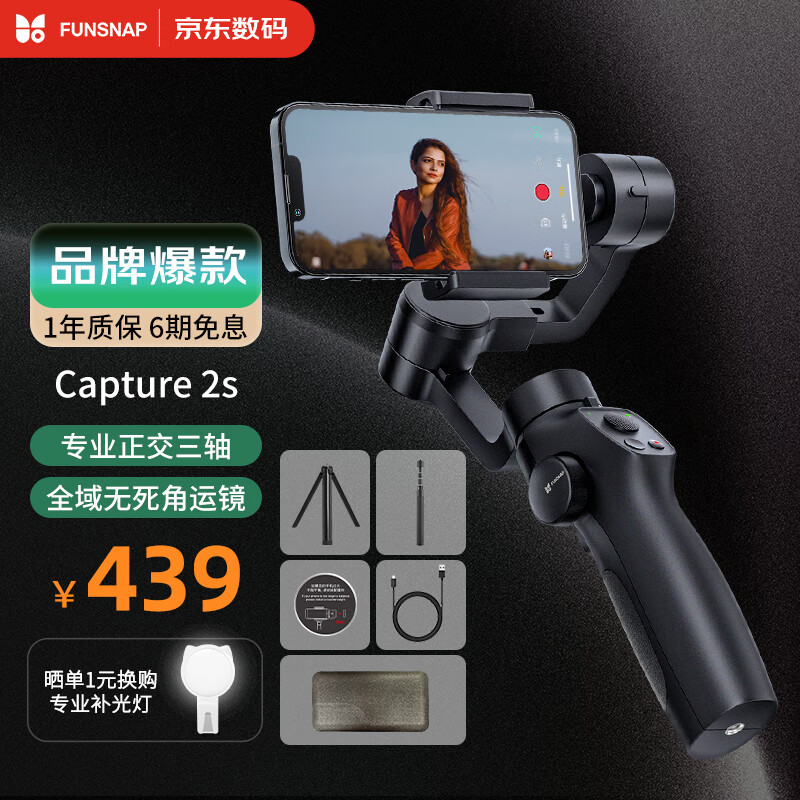 逗映(FUNSNAP)2s 手机稳定器 手持手机云台 三轴防抖云台稳定器 专业摄影 全域无死角运镜 俯仰320°大角度价格:439.00元!
