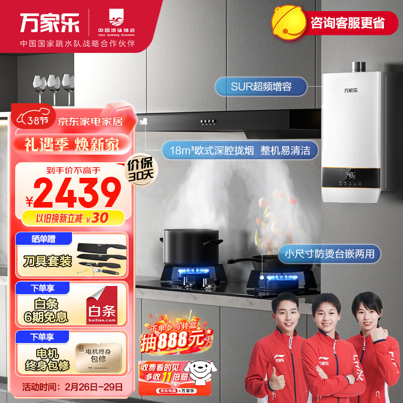 万家乐烟灶热三件套18立方油烟机灶具套装16L增容四季随温感热水器多件套装AT031+AY4+16D5S天然气价格:2639.00元!