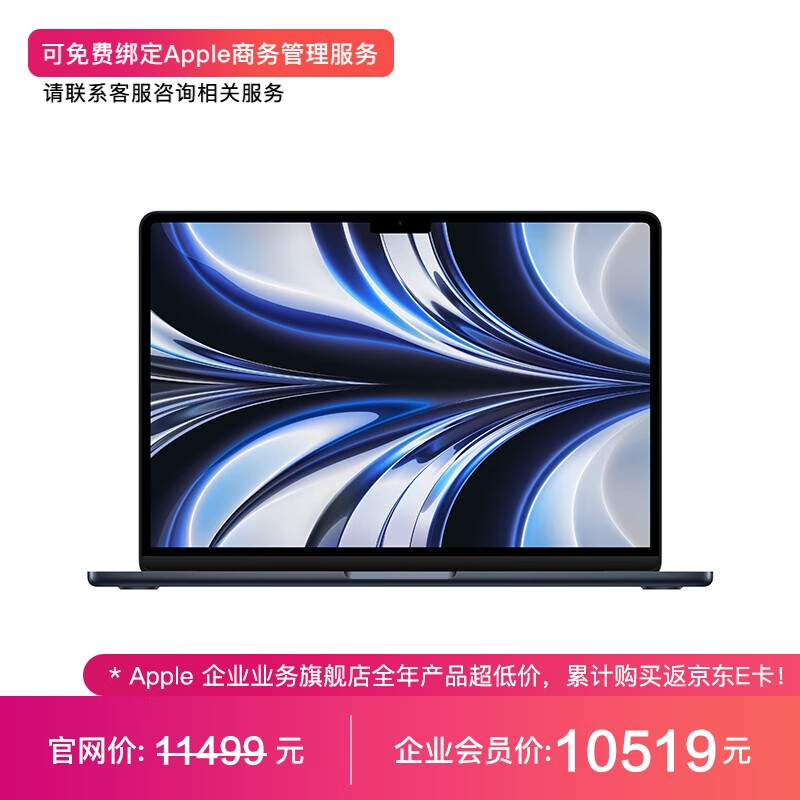 Apple MacBook Air(A2681) 13.6 8核M2芯片(10核GPU) 8G 512G SSD 午夜色 笔记本电脑 MLY43CH/A【企业专享】价格:11499.00元!