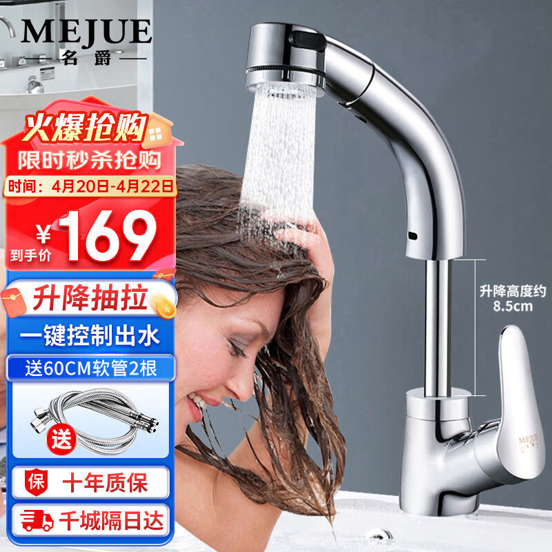 名爵(MEJUE)多功能抽拉式面盆水龙头 黄铜冷热洗手脸盆可升降龙头Z-012322价格:179.00元!