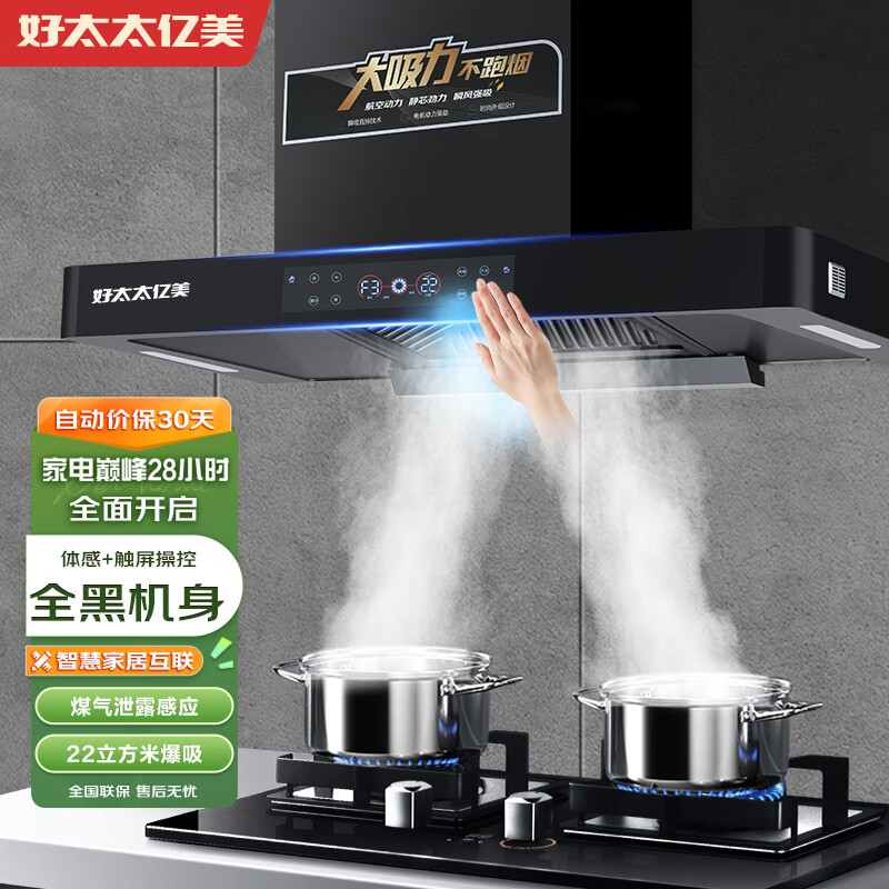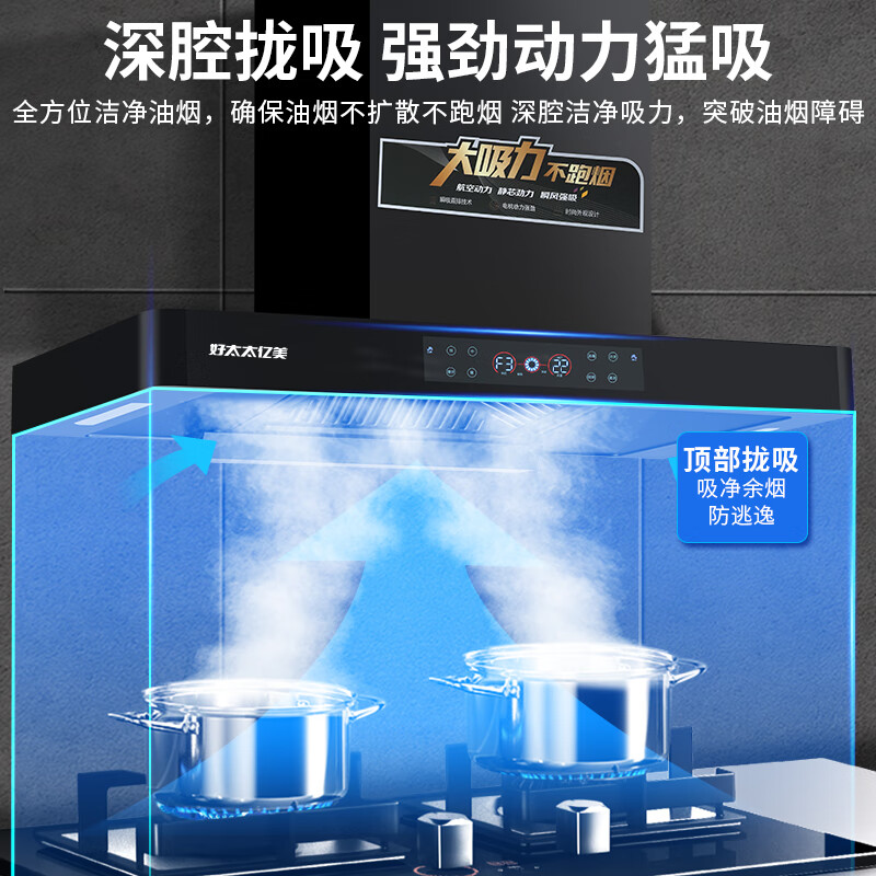 好太太亿美油烟机顶吸式抽油烟机家用厨房吸油烟机22立方大吸力欧式油烟机CXW-238-809DT7价格:556.00元!