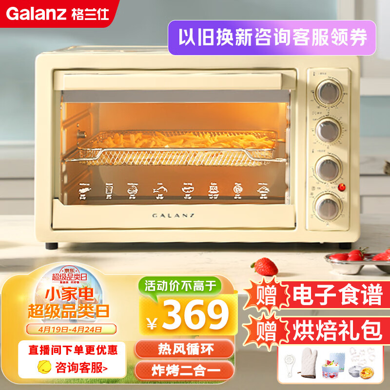格兰仕(Galanz)电烤箱 家用32升多功能空气炸电烤箱 独立温控/旋转烤叉/无油低脂/空气炸锅风炉烤箱KF32-J01价格:389.00元!