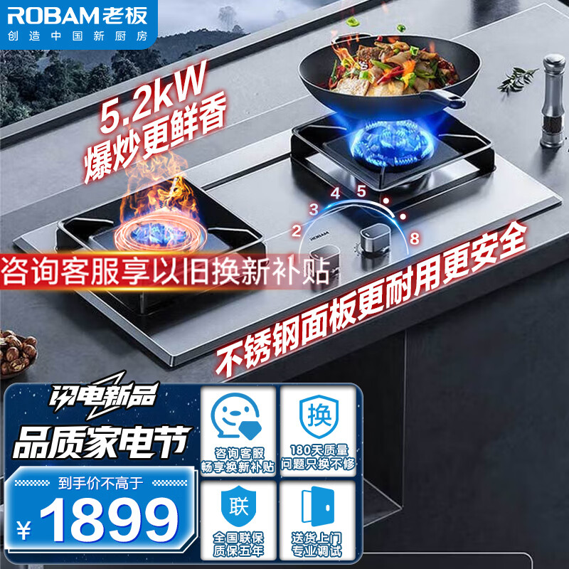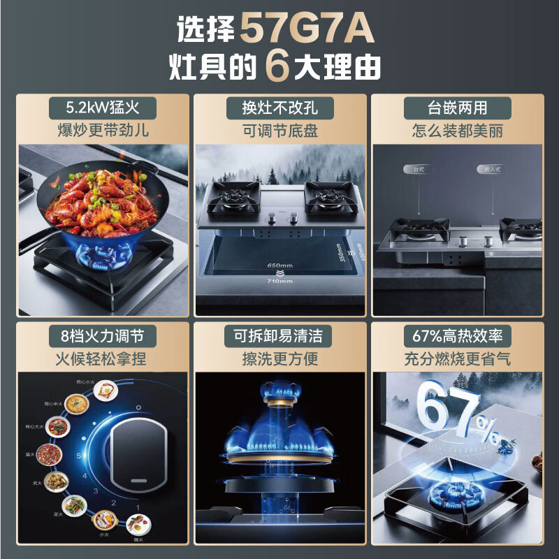 老板(Robam)燃气灶57G7A不锈钢易洁耐用5.2kW猛火灶具天然气灶家用嵌入式可调节底盘双灶灶台价格:1889.00元!