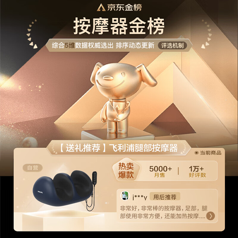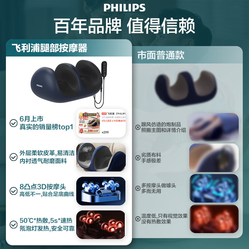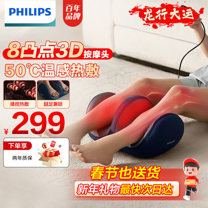 飞利浦(PHILIPS)足疗机腿部按摩器脚部足底按摩仪全自动揉捏热敷按足部小腿按摩器送爸爸妈妈父母亲长辈生日礼物 【8凸点3D按摩头3401F】价格:299.00元!