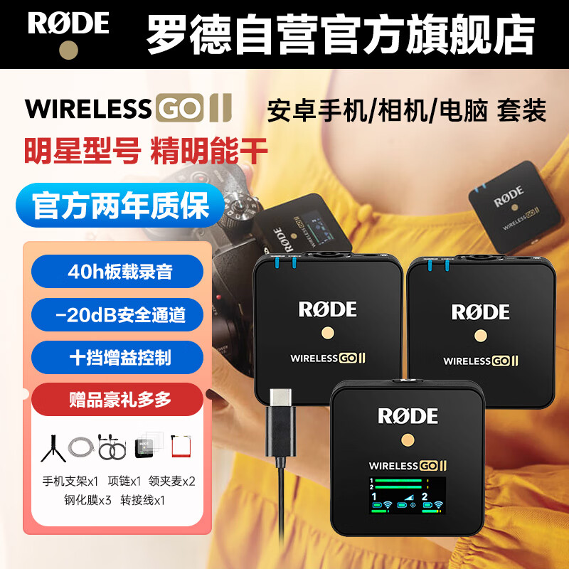RODE罗德Wireless GO II 无线领夹麦克风一拖二直播录音采访视频小蜜蜂手机相机专业收音话筒+安卓线价格:2645.00元!