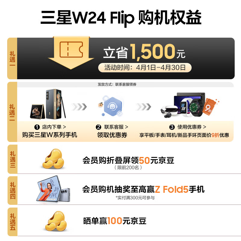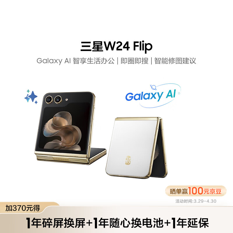 三星(SAMSUNG)W24 Flip AI手机 智能修图 12GB+512GB 冰瓷白 智能外屏掌心折叠 拍照手机 5G折叠屏手机【服务】价格:8869.00元!