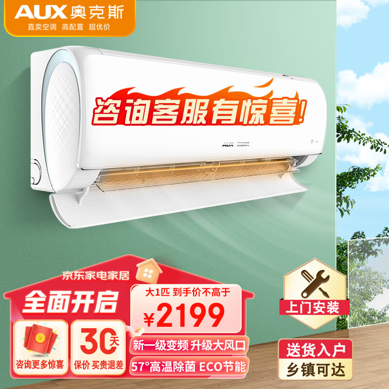 奥克斯(AUX)空调挂机大1匹新一级能效变频冷暖壁挂式大风口节能卧室家电KFR-26GW/BpR3DQC19(B1)[家电]价格:2199.00元!