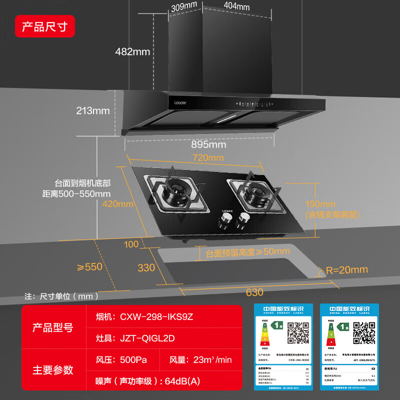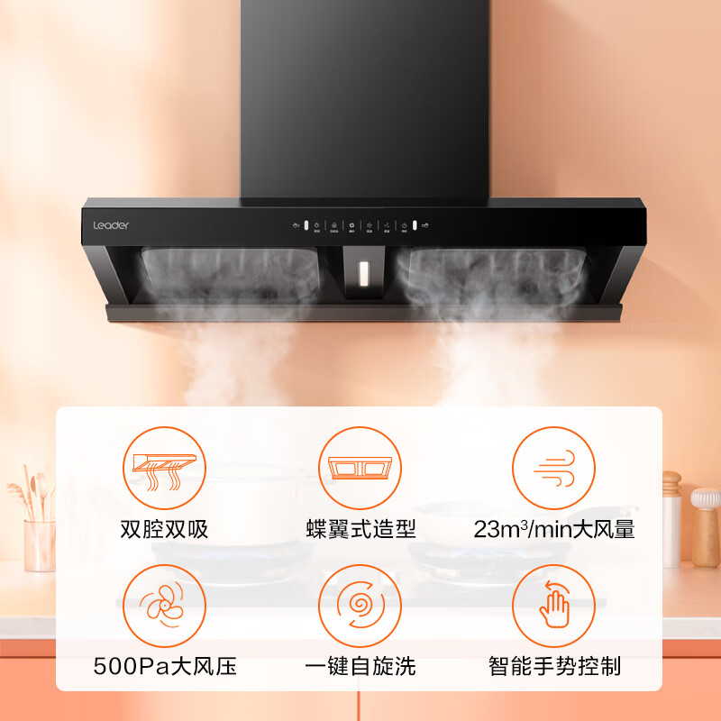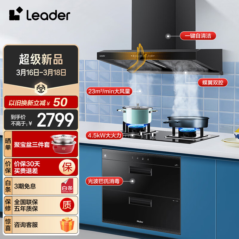 Leader海尔智家出品 抽油烟机 欧式顶吸油烟机燃气灶 23m3/min大吸力 烟灶消三件套IKS9Z+L2D天+12LCS价格:2799.00元!