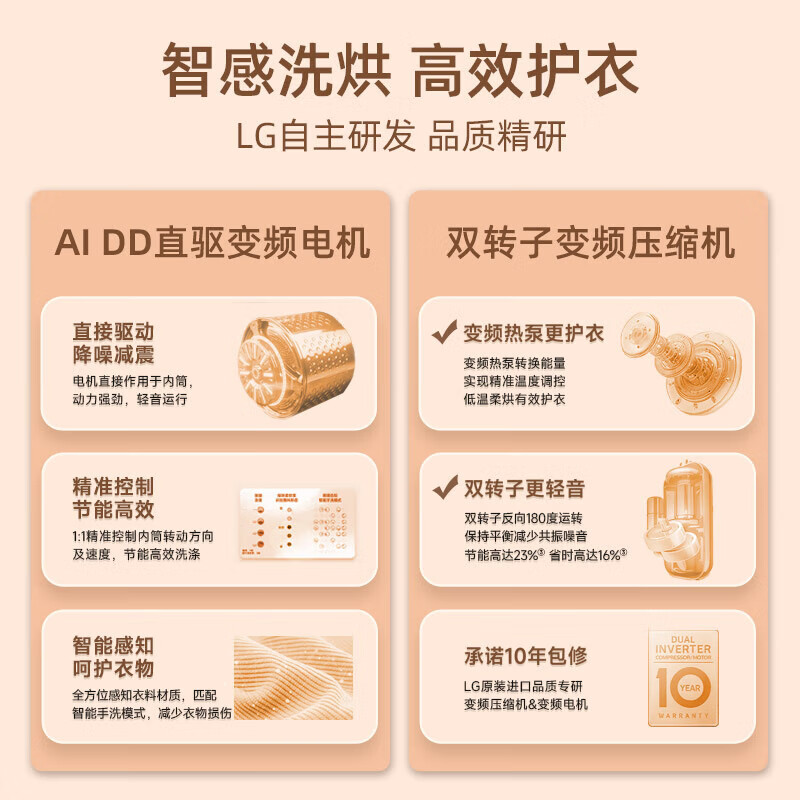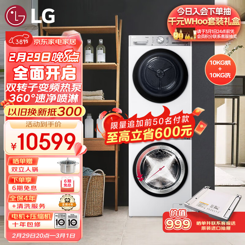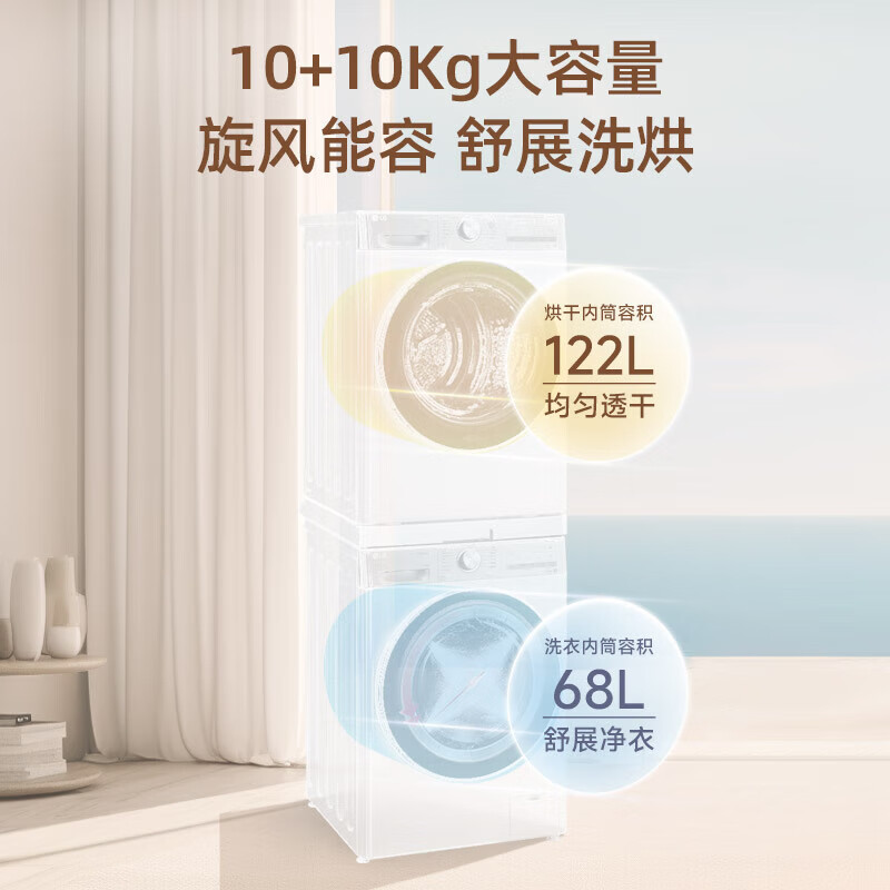 LG小旋风系列洗烘套装 10kg滚筒洗衣机全自动+10kg双转子变频热泵烘干机 FCW10Y4WA+RH10V9AV2WR 白价格:11199.00元!