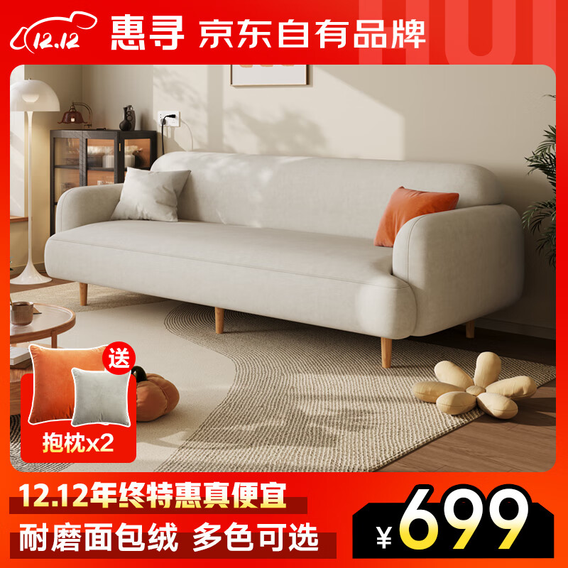 惠寻 京东自有品牌 绒面布艺沙发小户型客厅直排 三人位2.1米价格:729.00元!