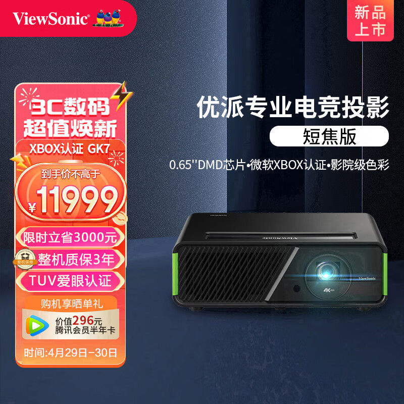优派GK7 投影仪4K家用 短焦投影机 家庭影院 手机投影 智能电视(微软Xbox认证 0.65DMD TUV护眼认证)价格:14999.00元!