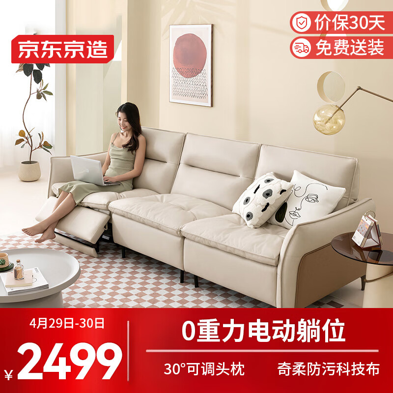 京东京造布艺沙发 奇柔科技布头枕可调双层座包 客厅小户型2.1m单电动SE15价格:3099.00元!