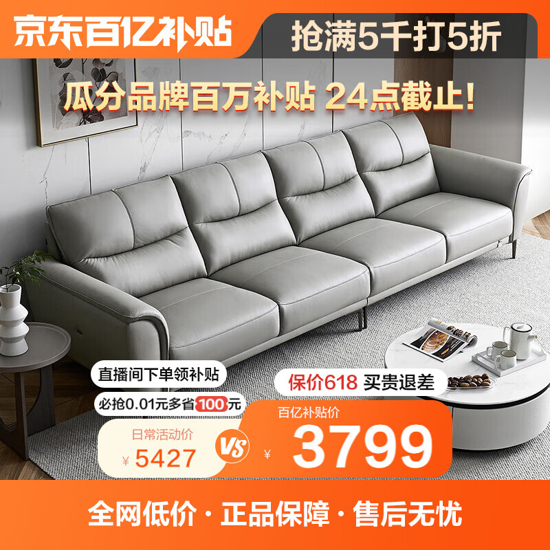 全友家居 真皮客厅现代简约头层牛皮直排式一字皮艺沙发家具112011价格:3799.00元!