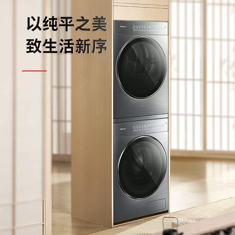 东芝(TOSHIBA)大白梨洗烘套装 10KG纯平全嵌全自动滚筒洗衣机+10KG热泵式变频烘干机 流光银DG-10T25B+DH-10T25B价格:13998.00元!