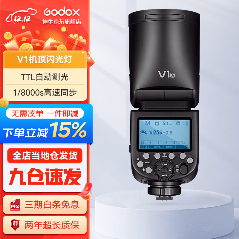 神牛(Godox) v1 闪光灯机顶外拍灯口袋灯便携摄影高速TTL锂电热靴灯 神牛v1标配 佳能价格:1380.00元!